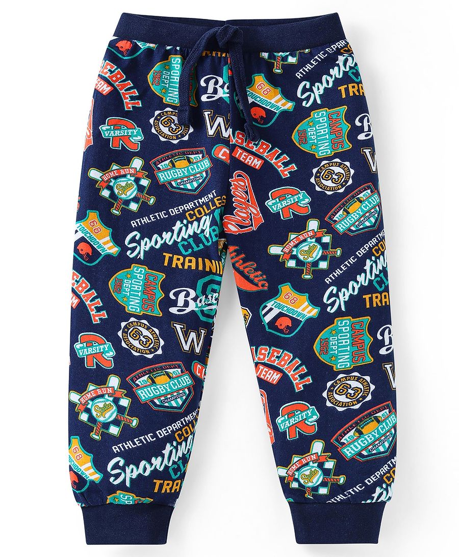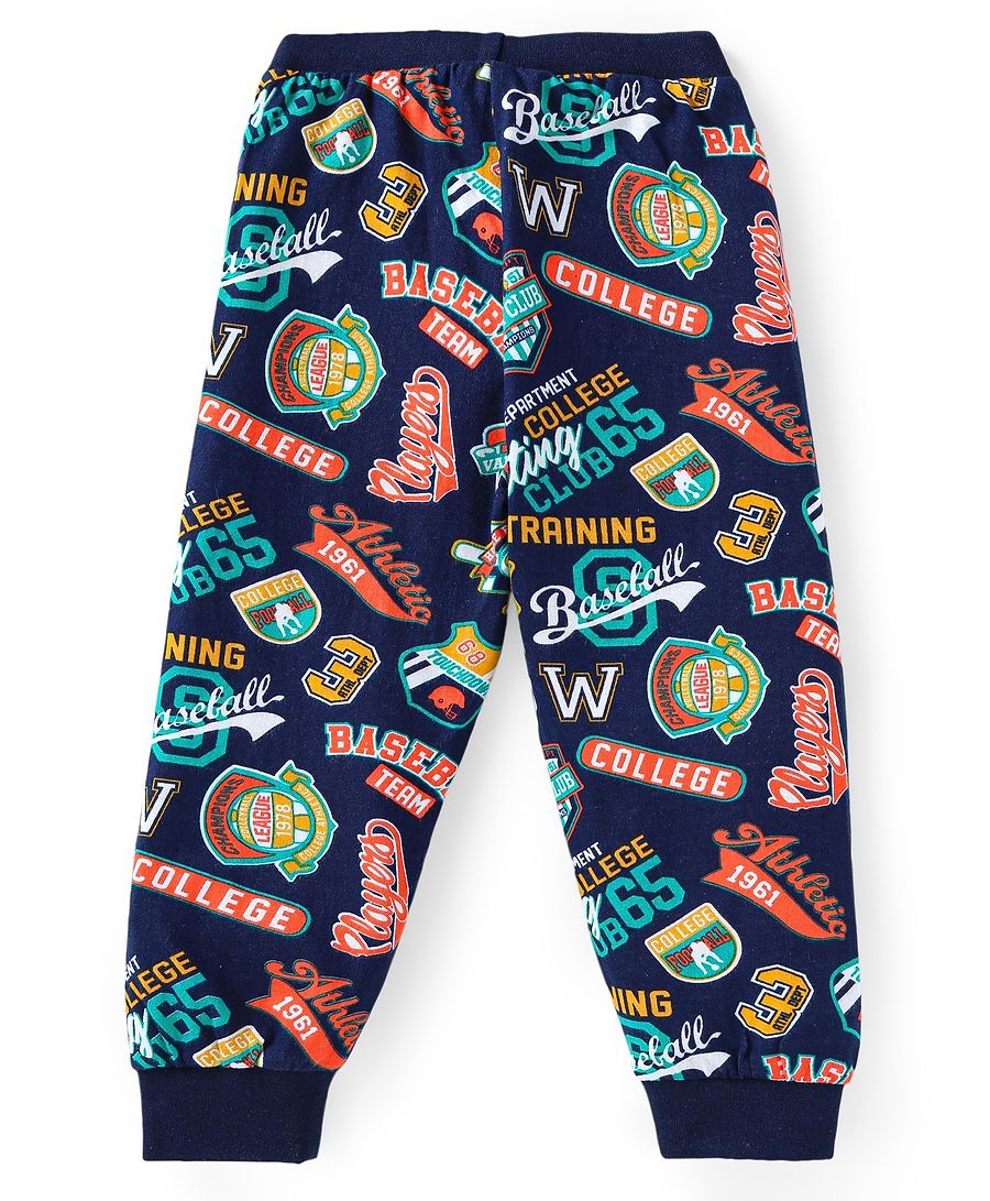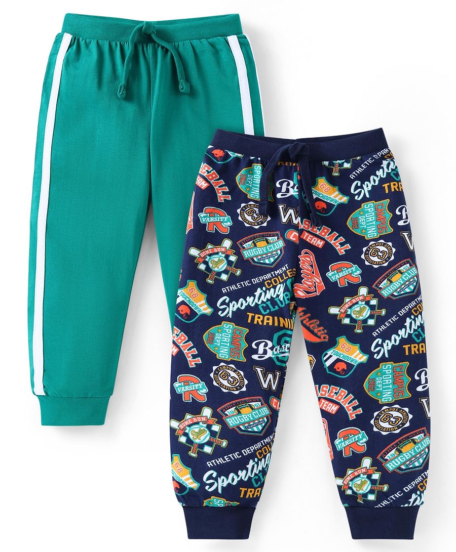 Babyhug Cotton Knit Full Length Solid & Logos Printed Lounge Pants Pack of 2 – Teal Blue & Navy Blue