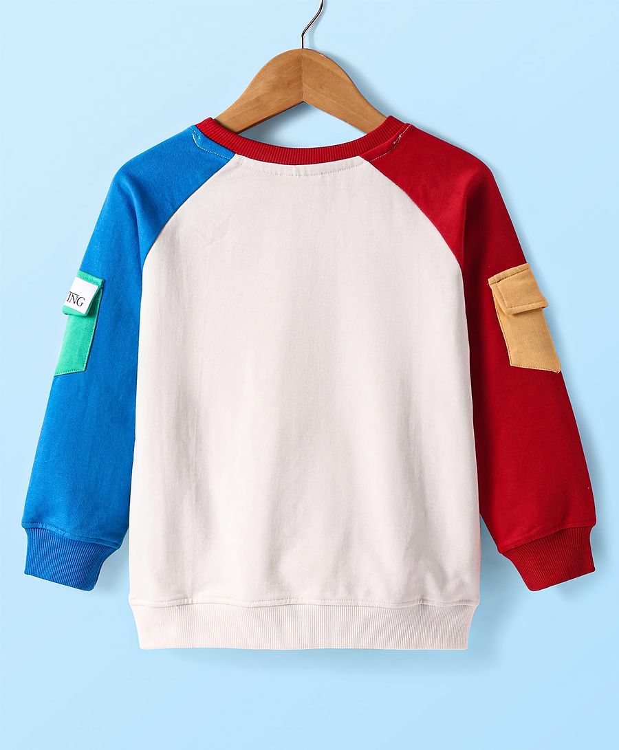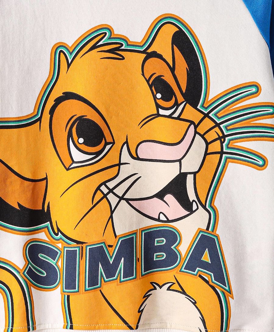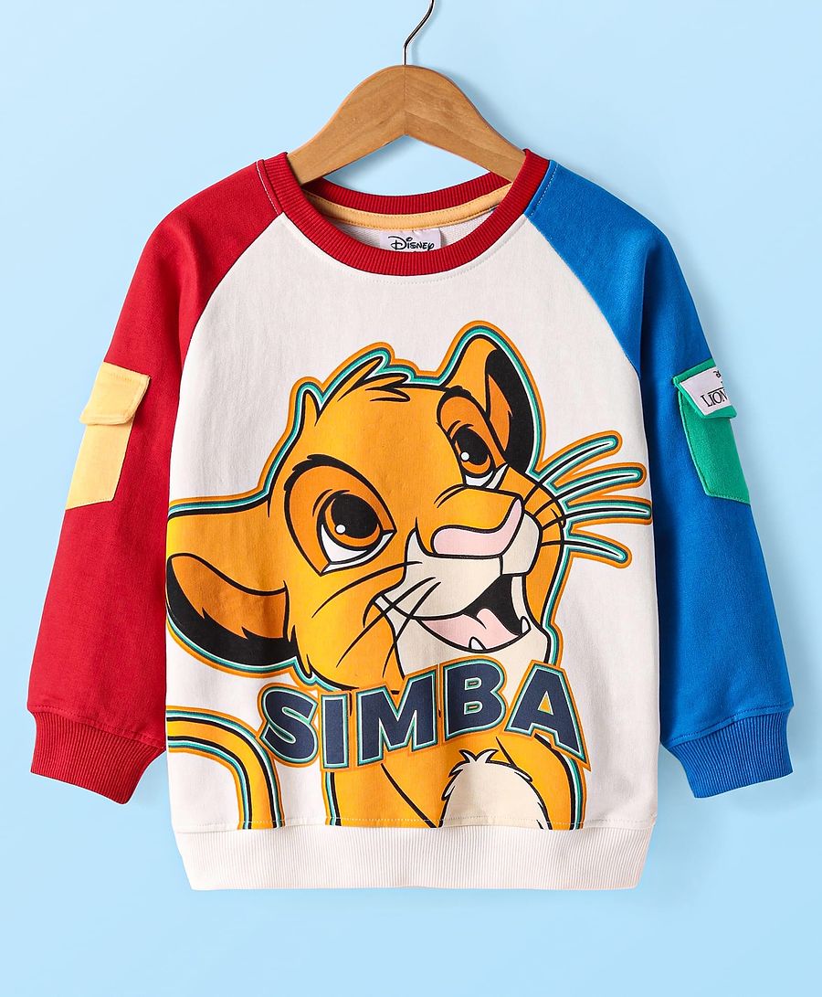 Babyhug Disney Knit Full Raglan Sleeves Sweatshirt with Lion King Graphics & Pocket Detailing – White Red & Blue
