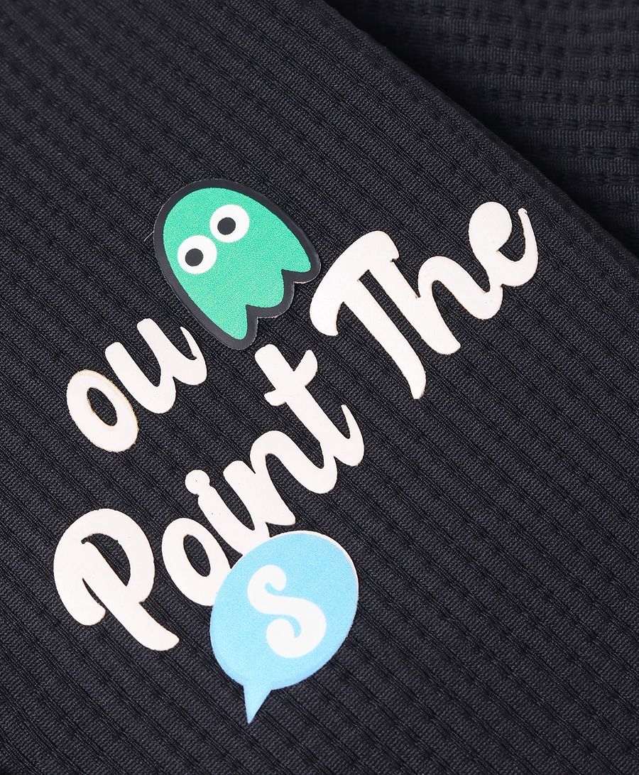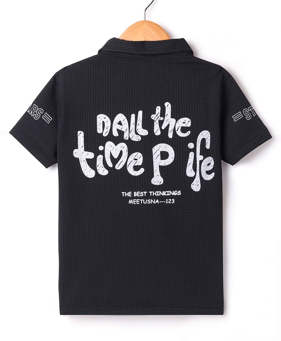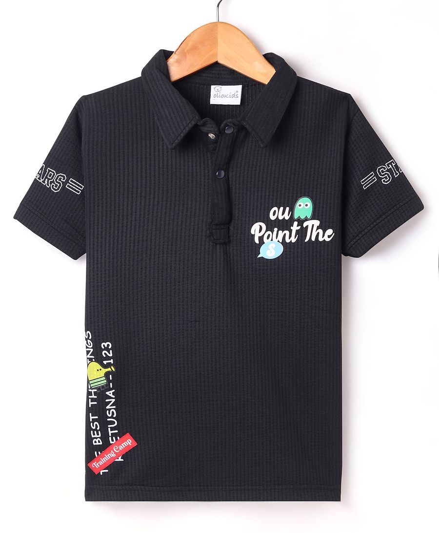 Olio Kids Cotton Knit Half Sleeves Polo T-Shirt with Text Print – Black